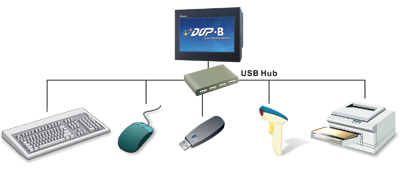 Порт USB Client для быстрой загрузки программы Байпас-функция позволяет панели DOP-B быть коммуникационным шлюзом между компьютером и ПЛК, загружать программу и осуществлять отладку через USB.