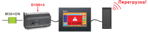 Возможность использования макросов для расширения функциональных возможностей панелей оператора DOP-B, что, в частности, позволяет организовать управление устройствами по интерфейсу без использования контроллера. Например, преобразователями частоты, термоконтроллерами и другими устройствами, позволяющими организовать управление полностью по интерфейсу (не требующие физических сигналов для управления).