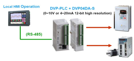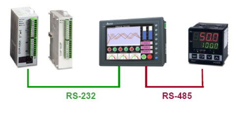• Термоконтроллер DTA4896 с двухконтурным PID-регулятором (нагрев/охлаждение) имеет интерфейс RS-485 .Контроллер может быть связан с панелью оператора серии DOP для контроля уровня температуры нагрева и режима работы (нагрев или охлаждение. Оператор может задавать температуру нагрева и параметры процесса управления непосредственно с панели оператора.
