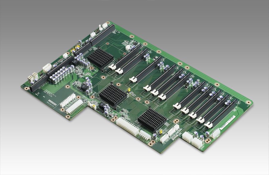 Объединительная плата PCE-5B12-00 оснащена десятью слотами расширения PCIe 2.0 x16, работающими в режиме x16, а также одним слотом PCIe 2.0 x16, работающим в режиме x4. Это позволит системным интеграторам эффективно проектировать многофункциональные высокопроизводительные графические/видео платформы или полноразмерные контроллеры цифровой обработки сигналов в рамках единой системы.