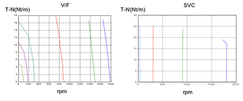 В общем виде, различие скалярного и векторного режимов управления асинхронным электродвигателем выражается в возможности поддержания заданной скорости вращения вала в приделах 0,1%, лучшими моментными характеристиками на пониженных частотах и хорошей динамикой (быстрым откликом) при набросе нагрузки.