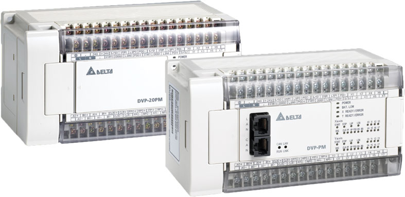 У контроллеров типа DVP-20PM существует два ЦПУ: DVP20PM00D (2 оси) и DVP20PM00M (3 оси).