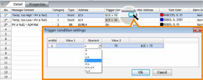 • Гибкая система установки параметров: параметры аварий можно устанавливать непосредственно в панеле оператора, без применения внешних программ