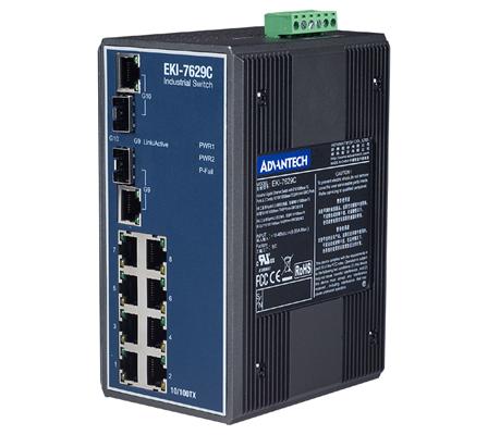 EKI-7629C-AE Неуправляемый коммутатор Ethernet, 8 портов 10/100Base-TX (RJ-45) и 2 порта 10/100/1000Base-TX (RJ-45) / SFP (mini-GBIC) Требует уточнения