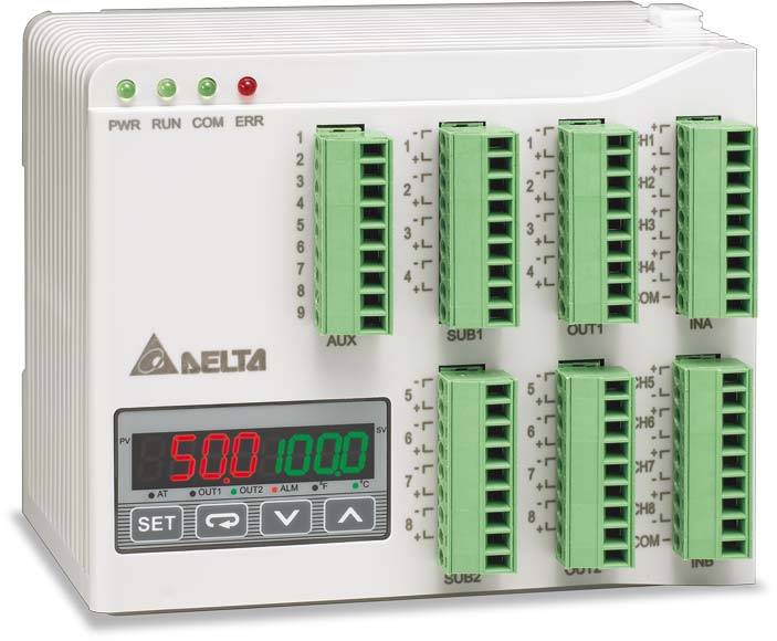 Характеристики DTE являются многоканальными модульными регуляторами температуры, поддерживают подключение до 8 термодатчиков. Каждый измерительный канал работает независимо. DTE монтируются на DIN-рейку и имеют много опциональных выходных модулей (реле, импульсное напряжение, аналоговые выходы). Встроенный RS-485 интерфейс со скоростью обмена до 115 200 бит/сек. Автоматическое программное управление с 64 наборами температуры и времени. Возможность дополнительного подключения модулей расширения DTC2000 (до 7 шт.), с синхронизацией их коммуникационных протоколов и автоматической установкой сетевых адресов. | Напряжение питания | 24 В постоянного тока | | Диапазон питания | ( 90~110 ) % | | Потребляемая мощность | Макс. 10W + 3W + 3W x кол-во DTC2000, подключенных параллельно (макс. 7) | | Входной сигнал | Термопары: K , J , T , E , N , R , S , B , L , U , ТХК | | Термосопротивления: тип Pt100, JPt100, Cu50 | | Время выборки | 1.0 сек на все входы | | Метод управления | ПИД-регулятор ПИД-регулятор с программным управлением двухпозиционный регулятор (ВКЛ/ВЫКЛ) ручная регулировка | | Управляющие выходы | R : релейный выход, однополюсный нормально-открытый - 250 В переменного тока, 3 А (резистивная нагрузка) | | V : импульсный выход по напряжению – 12В +10% ~ -20% (Макс. ток нагрузки 40 мА) | | С: аналоговый выход – 4-20мА постоянного тока (сопротивление нагрузки – макс. 500 Ом) | | L : аналоговый выход по напряжению –0-10В постоянного тока (сопротивление нагрузки должно быть больше 1 кОм) | | Коммуникация по RS-485 | MODBUS ASCII/RTU, 2400~115200 бит \ с | | Вибропрочность | 10-55 Гц, 10м/с 2 в течение 10 минут по каждой из трех осей | | Ударопрочность | Макс. 300 м/с 2 , 3 раза по каждой из трех осей, 6 направлений. | | Рабочая температура окр. среды | 0° - +50° С | | Температура хранения | -20° - +65° С | | Максимальная высота установки | 2000 м. над уровнем моря. | | Степень загрязнения окр. среды | 2 | | Влажность окружающей среды | 35% - 85% относительной влажности (без образования конденсата) | Различное технологическое оборудование, печи и холодильники, климатические камеры, и т.д. Примеры применения: Документация и каталоги