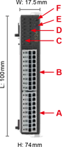 | NO. | Описание | | A. | Вход питания DC | | B. | Выход EtherCAT | | C. | Вход EtherCAT | | D. | Индикатор состояния (LED) | | E. | Индикатор питания (LED) | R1-EC5621D0 Удаленный модуль 1-канального импульсного вывода | NO. | Описание | NO. | Описание | | A. | Порт входов/выходов | D. | Индикатор сигнала вх/вых | | B. | Порт входов/выходов | E. | Индикатор состояния | | C. | Индикатор сигнала вх/вых | F. | Индикатор питания | | Вход | Описание | Вход | Описание | | 24V | Питание 24В | GND | Внешнее заземление | | MEL | Конечная точка (-) | QA+ | Фаза энкодера A (+) | | PEL | Конечная точка (+) | QA- | Фаза энкодера A (-) | | ORG | Сигнал Home | QB+ | Фаза энкодера B (+) | | ALM | Сигнализация серво | QB- | Фаза энкодера B (-) | | SON | Servo On | PA+ | Импульсный сигнал (+) | | CLR | Сброс сигнала серво | PA- | Импульсный сигнал (-) | | QZ+ | Фаза энкодера Z (+) | PB+ | Сигнал Dir. (+) | | QZ- | Фаза энкодера Z (+) | PB- | Сигнал Dir. (-) | R1-EC6002D0 / R1-EC6022D0 Удаленный модуль 16-канального ввода  | NO. | Описание | NO. | Описание | | A. | Клеммы порта 1 | D. | Сигнал вх/вых порта 1 X15~X08 (слева направо) | | B. | Клеммы порта 0 | E. | Индикатор состояния | | C. | Сигнал вх/вых порта 0 X07~X00 (слева направо) | F. | Индикатор питания | | Вход | Описание | Вход | Описание | | CM0 | Port 0 COM | CM1 | Port1 COM | | X00 | Вход 0 | X08 | Вход 8 | | X01 | Вход 1 | X09 | Вход 9 | | X02 | Вход 2 | X10 | Вход 10 | | X03 | Вход 3 | X11 | Вход 11 | | X04 | Вход 4 | X12 | Вход 12 | | X05 | Вход 5 | X13 | Вход 13 | | X06 | Вход 6 | X14 | Вход 14 | | X07 | Вход 7 | X15 | Вход 15 | R1-EC7062D0 Удаленный модуль 16-канального вывода | NO. | Описание | NO. | Описание | | A. | Клеммы порта 1 | D. | Сигнал вх/вых порта 1 X15~X08 (слева направо) | | B. | Клеммы порта 0 | E. | Индикатор состояния | | C. | Сигнал вх/вых порта 0 X07~X00 (слева направо) | F. | Индикатор питания | | Вход | Описание | Вход | Описание | | GND | Port 0 GND | GND | Port1 GND | | X00 | Port 0 Выход 1 | X08 | Port 1 Выход 1 | | X01 | Port 0 Выход 2 | X09 | Port 1 Выход 2 | | X02 | Port 0 Выход 3 | X10 | Port 1 Выход 3 | | X03 | Port 0 Выход 4 | X11 | Port 1 Выход 4 | | X04 | Port 0 Выход 5 | X12 | Port 1 Выход 5 | | X05 | Port 0 Выход 6 | X13 | Port 1 Выход 6 | | X06 | Port 0 Выход 7 | X14 | Port 1 Выход 7 | | X07 | Port 0 Выход 8 | X15 | Port 1 Выход 8 | R1-EC8124D0 Удаленный модуль 4-канального аналогового ввода  | NO. | Описание | NO. | Описание | | A. | Порт сигналов CH3/CH4 | D. | Индикатор сигналов CH3/CH4 | | B. | Порт сигналов CH1/CH2 | E. | Индикатор состояния | | C. | Индикатор сигналов CH1/CH2 | F. | Индикатор питания | | Вход | Описание | Вход | Описание | | GND | Аналоговая земля | GND | Аналоговая земля | | AI0 | Вход по току/ напряжению CH1 | AI2 | Вход по току/ напряжению CH3 | | GND | Аналоговая земля | GND | Аналоговая земля | | AG0 | Общий CH1 * | AG2 | Общий CH3 * | | GND | Аналоговая земля | GND | Аналоговая земля | | AI1 | Вход по току/ напряжению CH2 | AI3 | Вход по току/ напряжению CH4 | | GND | Аналоговая земля | GND | Аналоговая земля | | AG1 | Общий CH2 * | AG3 | Общий CH4 * | | GND | Аналоговая земля | GND | Аналоговая земля | *В токовом режиме: соединяйте общую клемму с клеммой GND ; В режиме по напряжению: отключите эту клемму R1-EC9144D0 Удаленный модуль 4-канального аналогового вывода  | NO. | Описание | NO. | Описание | | A. | Порт сигналов CH3/CH4 | D. | Индикатор сигналов CH3/CH4 | | B. | Порт сигналов CH1/CH2 | E. | Индикатор состояния | | C. | Индикатор сигналов CH1/CH2 | F. | Индикатор питания | | Вход | Описание | Вход | Описание | | GND | Аналоговая земля | GND | Аналоговая земля | | VO0 | Выход по наряжению CH1 | VO2 | Выход по наряжению CH3 | | GND | Аналоговая земля | GND | Аналоговая земля | | IO0 | Токовый выход CH1 | IO2 | Токовый выход CH3 | | GND | Аналоговая земля | GND | Аналоговая земля | | VO1 | Выход по наряжению CH2 | VO3 | Выход по наряжению CH4 | | GND | Аналоговая земля | GND | Аналоговая земля | | IO1 | Токовый выход CH2 | IO3 | Токовый выход CH4 | | GND | Аналоговая земля | GND | Аналоговая земля