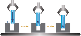 При обучении позиция определяется вручную и записывается в память SCARA робота