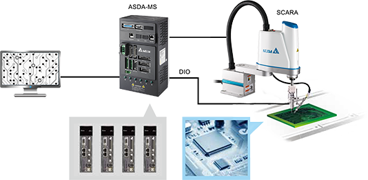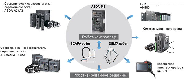 • Возможность подключения, непосредственно к ASDA-MS, до 4-x серводвигателей (мощностью до 1кВт).