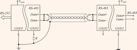 Рис. 30. Заземление в промышленной сети на основе интерфейса RS-485