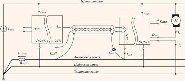 В основе такого деления земель лежит различный уровень чувствительности к помехам аналоговых и цифровых цепей, а также сигнальных и мощных (силовых) цепей и, как правило, гальваническая развязка между указанными землями в системах промышленной автоматизации.