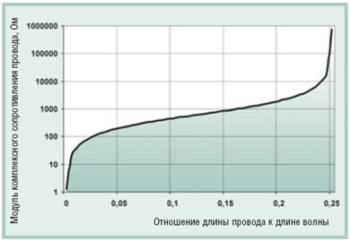 Отметим, что когда длина проводника приближается к 1/4 длины волны помехи, его сопротивление стремится к бесконечности.