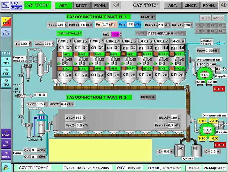 Автоматизированная система управления технологическим процессом сухой  газоочистки ("АСУ ТП "ГОУ4") предназначена для обеспечения оптимальной работы установки, контроля основных параметров, предотвращения аварийных ситуаций.