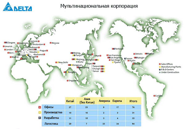 Сегодня DELTA ELECTRONICS - это корпорация с годовым оборотом более 5 миллиардов долларов США (за 2006 объем продаж 4.268 миллиарда долларов), имеющая на середину 2007 года: