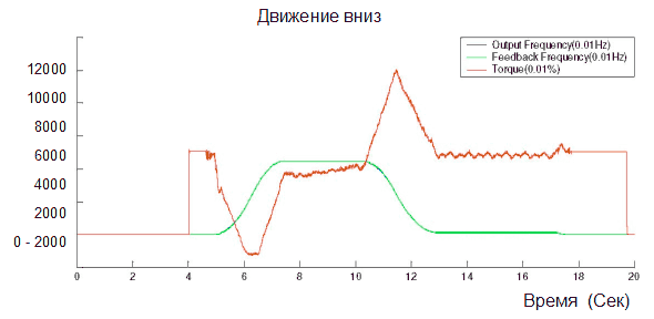 Преобразователь VFD-VL обеспечивает оптимизацию процессов за счёт высокопроизводительного процессора и имеет быструю реакцию наизменения момента нагрузки. Подход к заданному положению осуществляется плавно и без вибраций, что объективно подтверждается записанным графиком движения подъёмника.