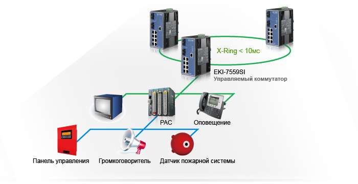 - Поддержка технологии резервирования Advantech XRing (время восстановления < 10 мс)