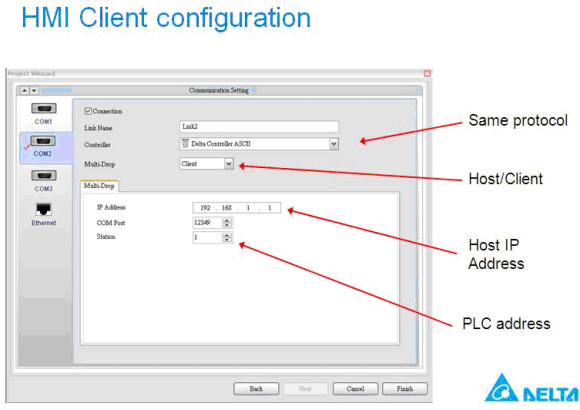 Благодаря подключению типа multi-drop по Ethernet между двумя панелями образуется связь host-client, обеспечивающая их автоматическую взаимную синхронизацию, т.е. все действия с одной панелью сразу дублируются на другой и наоборот.