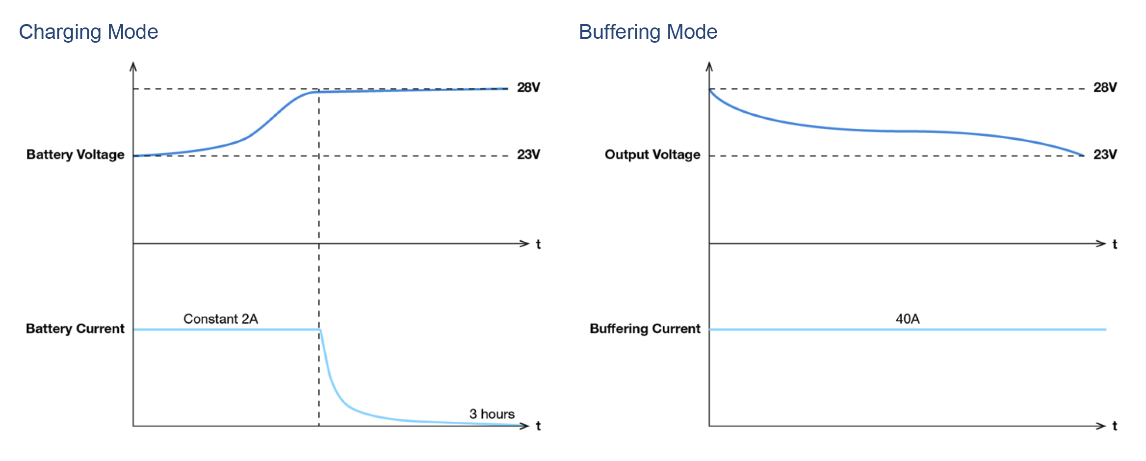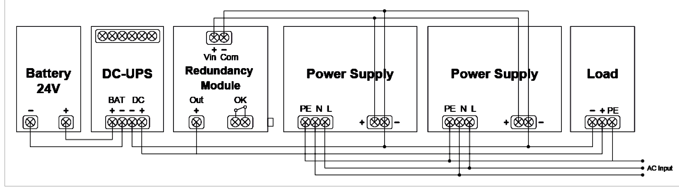 Устройство предназначено для работы во вторичных цепях питания промышленной электроники и автоматики с напряжением 24 V DC, и может обеспечивать до 4,5 минут автономной работы системы с током потребления до 40 А.