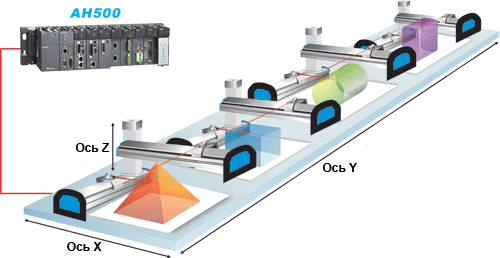 AH500 поддерживает превосходные функции управления движением, включая 3-осевую линейную интерполяцию, 2-х осевую дуговую интерполяцию, 3-осевую helix-интерполяцию. Кроме того, AH500 способен контролировать до 12 осей или 4 групп по 3 оси синхронно с циклом 1 мс через высокоскоростную сеть управления движением DMCNET. AH500 удовлетворяет требованиям для сложной обработки или точного управления движением и эффективен например в таких приложениях как,  производство строительных материалов, текстильное оборудование, упаковка пищевых продуктов и др.