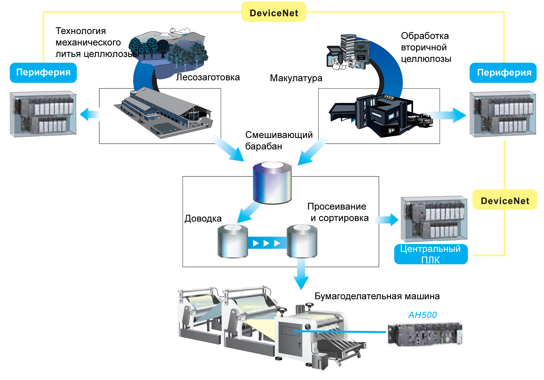 AH500 является системой модульных контроллеров, предназначенной практически для всех типов задач верхних уровевней автоматизации. Исчерпывающий набор модулей ввода вывода и гибкость структуры системы удовлетворяют требованиям интеграции наилучшим образом. Благодаря расширению через децентраизованную периферию, можно создать основную станцию AH500 в качестве центральной системы управления и выделить удаленные системы ввода / вывода на разных этажах для задач ОВК, или в разных обрабатывающих участках бумажного производтва. AH500 отвечает не только требованиям приложений для промышленных машин и устройств, но он также предоставляет собой комплексное решения для автоматизации.