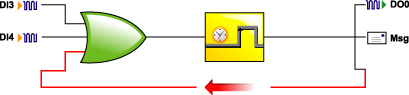Часто состояние выхода зависит от состояния какого-либо входа, для реализации этой зависимости используются достаточно сложно программируемые и дорогие ПЛК, выполняющие промежуточные логические функции. Мы можем использовать встроенные в ADAM-3600 логические функции, снабженные простым графичекским интерфейсом для логического управления модулем.