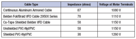Можно предложить более точное описание того, что происходит в моторе: величина выброса напряжения, либо “звона” является функцией энергии, запасенной в индуктивности проводов кабеля, во время фронта каждого импульса напряжения из частотника. Индуктивность тем больше, чем длиннее кабель. Индуктивность увеличивает время, необходимое для зарядки емкости двигателя. Когда эквивалентная емкость двигателя уже заряжена до номинального напряжения, энергия, запасенная в индуктивности кабеля продолжает ее заряжать, вызывая перенапряжения.