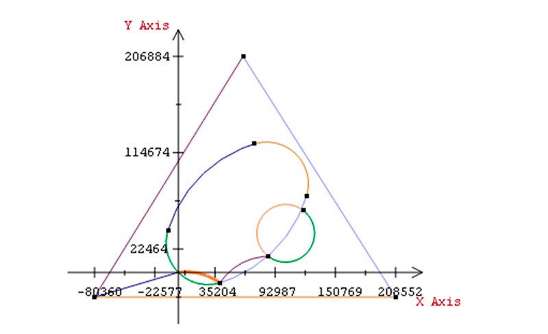 Для отладки позиционирования существует простая программа симуляции перемещений с отображением будущей траектории на графике